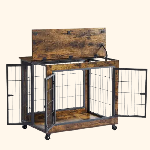 Combining style and function, this versatile wooden indoor kennel can be used both as a safe space for pets and as a practical piece of furniture that can be easily integrated into your interior design.